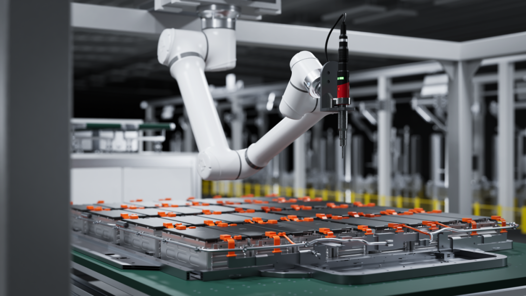 针对新能源汽车底盘电池包视觉检测而研发的超长臂展机型EC64-19协作机器人,可基于视觉检测、摄影摄像系统能在不依赖外部轴的情况下,在半径1.9米的球形空间内从任意角度对产品进行全方位、快速、准确的视觉检测和拍摄。