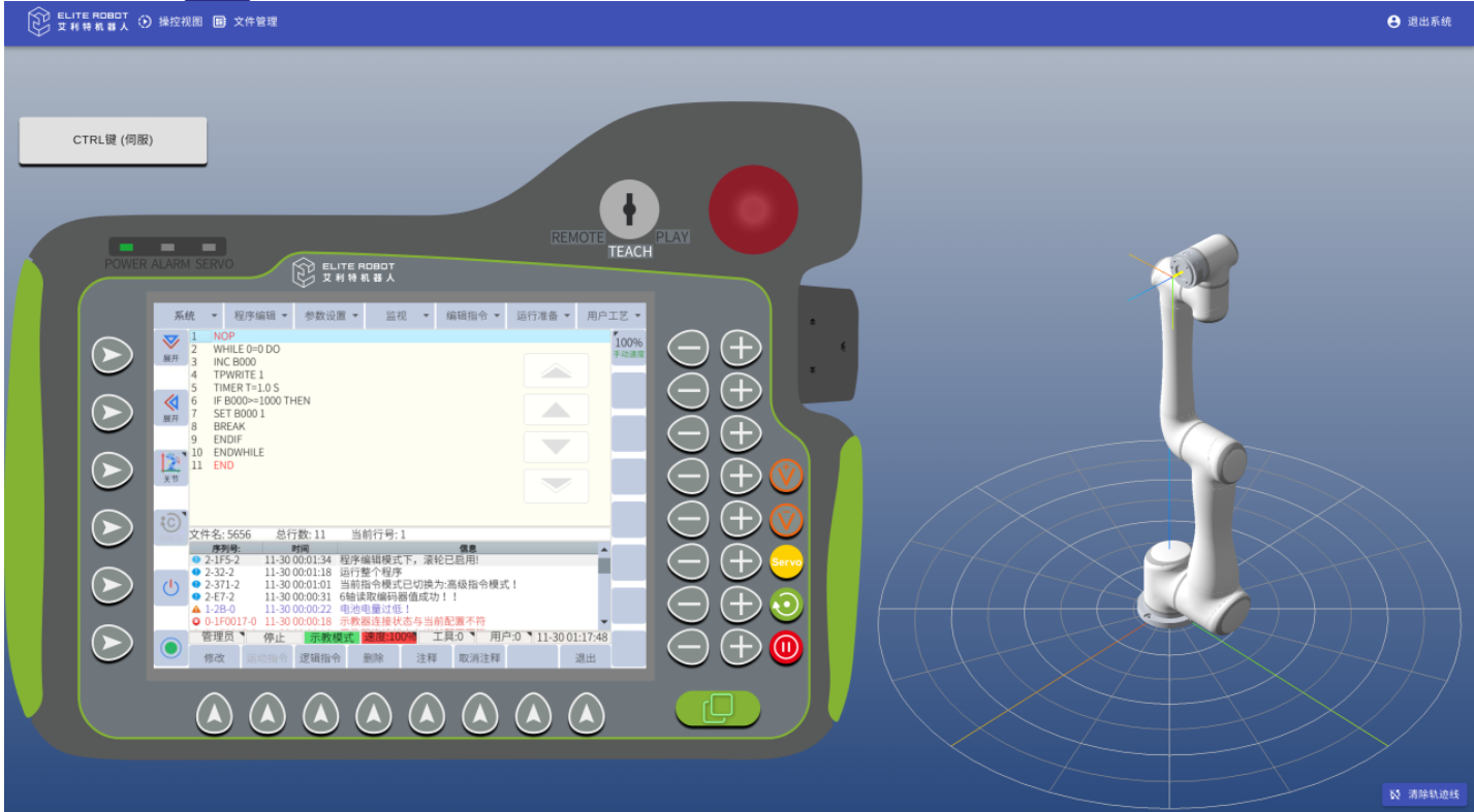 注:3.12以下3.0.1以上的版本机器人版本支持网页示教器,支持示教器的界面显示和控制,以及机器人模型的实时显示和对应轨迹线的显示,同时还支持编写机器人的jbi运行程序和lua脚本程序。