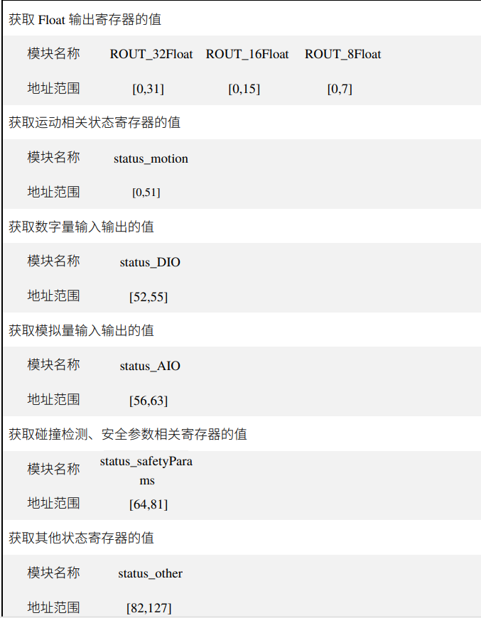 9. 具体寄存器详细功能(比如想获取机器人当前位姿或者角度以及系统状态这种) 可查找通信协议手册。