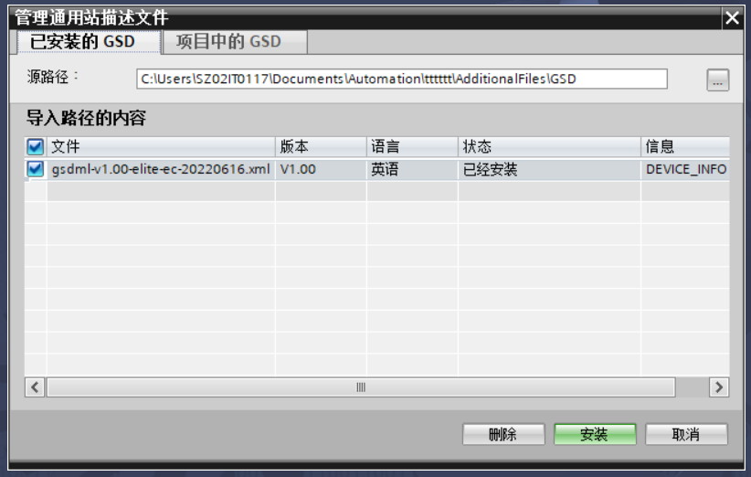 将下面链接的NG28娱乐机器人GSD 文件安装到 TIA PORTAL 中管理通用描述文件,如图 2-2 所示。