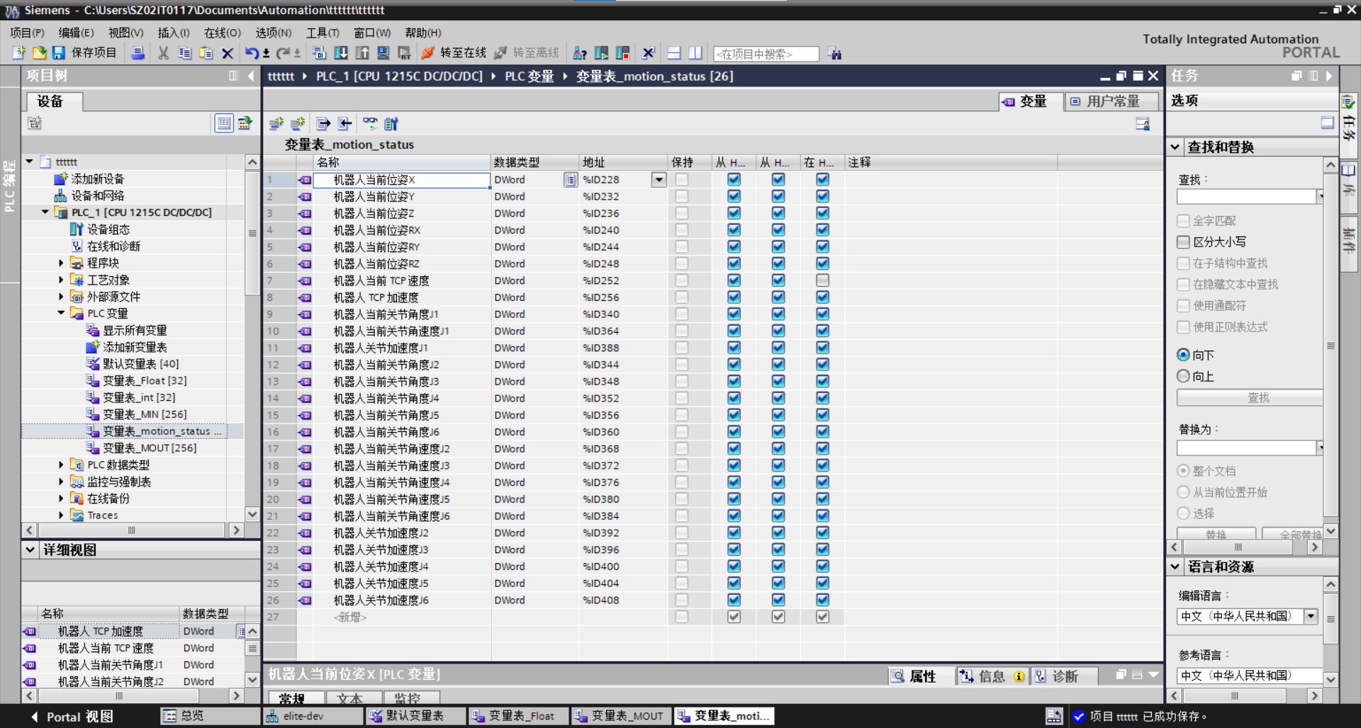 机器人端启动脚本,plc开启监视即可看到输入输出值的变化。