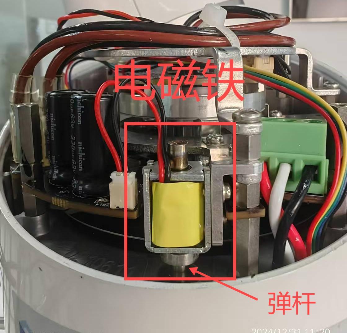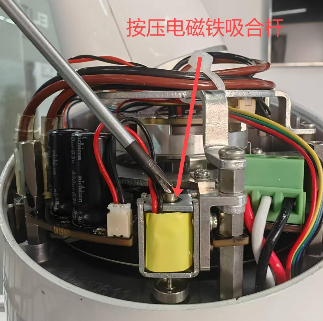 步骤三:检查电磁铁抱闸和减速机是否正常。1.关闭电源,将故障关节的端盖打开,检查电磁铁的弹杆是否卡死或者弹杆掉落。