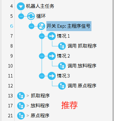 在程序中多次使用重复信号点位,如抓手程序,吸盘程序,因子程序无法调用子程序,建议使用文件夹,具体情况请看下图