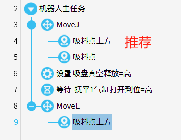 路点名称建议改成当前动作名称,如:吸料点,吸料上方点,抓料点,抓料上放点,放料点,放料上方点。