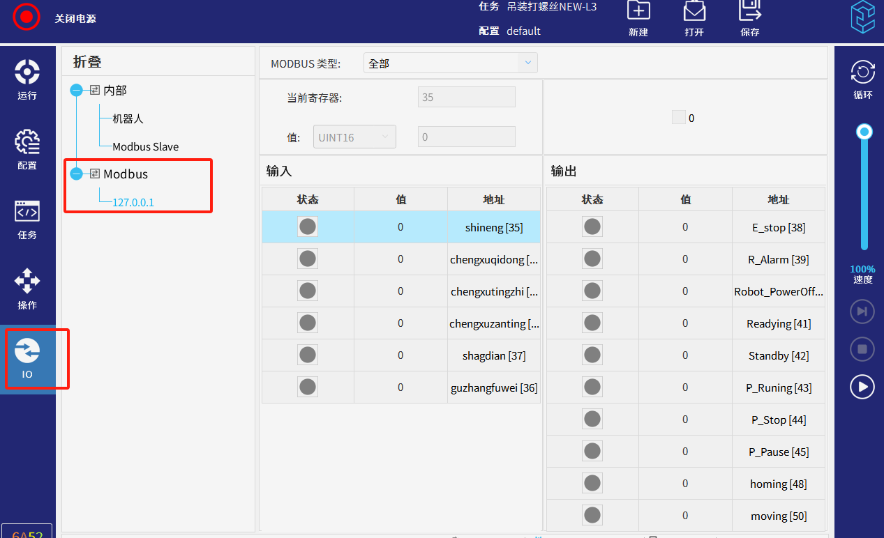 1. 可在左侧栏目IO--modbus,查看已配置好信号状态