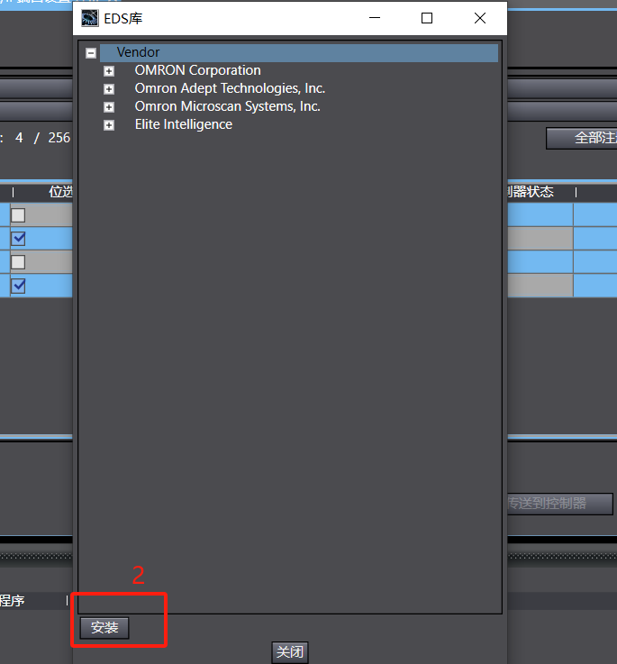 5、 在文件夹OMRON中的Communications Adapter找到对应的plc型号的文件,双击文件既可加入中间栏,在从Elite Intelligence中找到机器人eds描述文件,双击文件既可加入中间栏