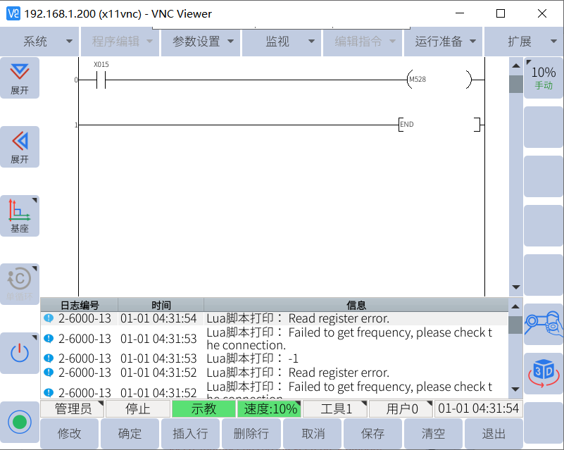 整体标定好后,运行JBI程序,将钥匙旋钮转到PLAY模式,速度要放到100%,才能跟上传送带速度,然后上伺服,启动。