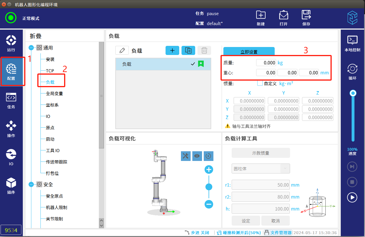 1.根据实际工具情况,合理设置机器人负载数据。