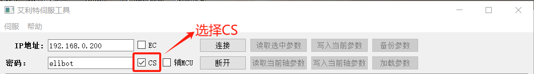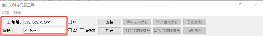 2.输入对应的IP地址,以及密码:(cs密码:elibot),如图4-5所示: