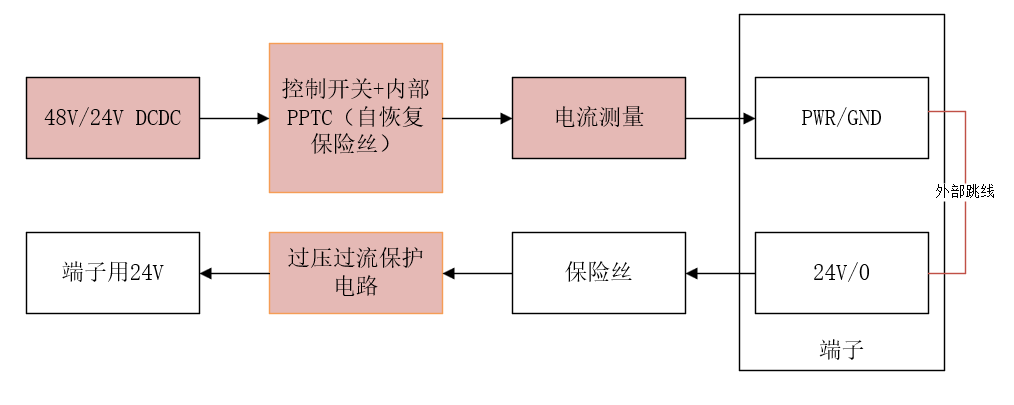 3.如以上均无异常,则使用万用表“蜂鸣器”和"直流电"档位——分别排查“图-1”的2号位置测试(24V-0V;引脚)是否有回路和是否有24V电压(注意;需要把端子排插上,确保和(PWR-GND)引脚相通),如无电压,如在有回路的情况下无电压或电压低和24V相差较远,可以排查是否有外部设备短路或者有高电阻干扰。