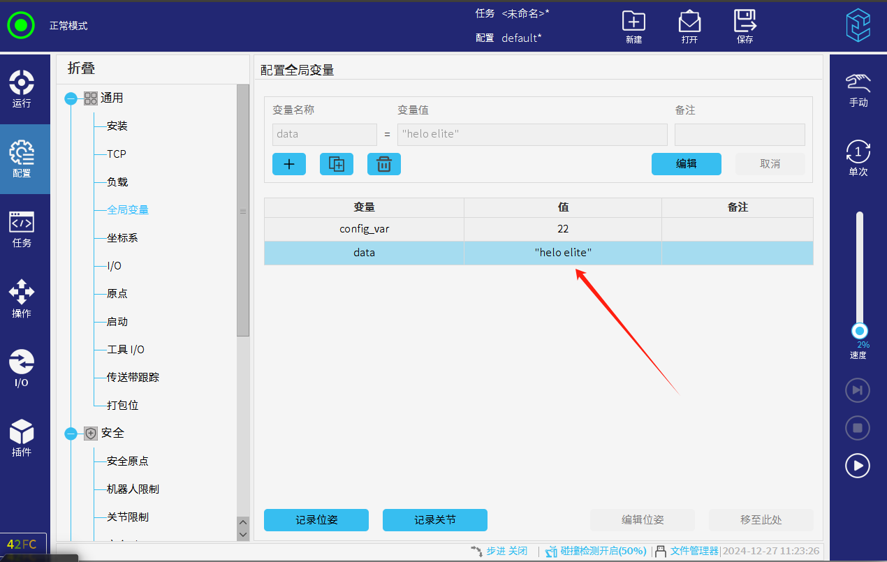 例如,用户希望对/home/elite/user/program 下的 16.txt 文件在机器人脚本中进行读写。此方法适用于软件版本 2.5 及以上!!
