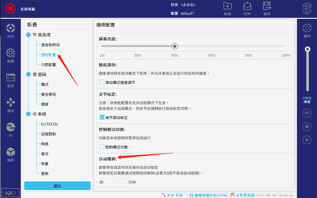 需要注意,2.13之前的版本,屏保只有自动锁屏,没有手动锁屏。设置好自动锁屏时间 后,规定时间内示教器没有任何操作,才会锁屏。