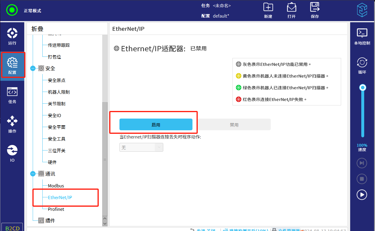 点击配置---EthereNet/IP---启用