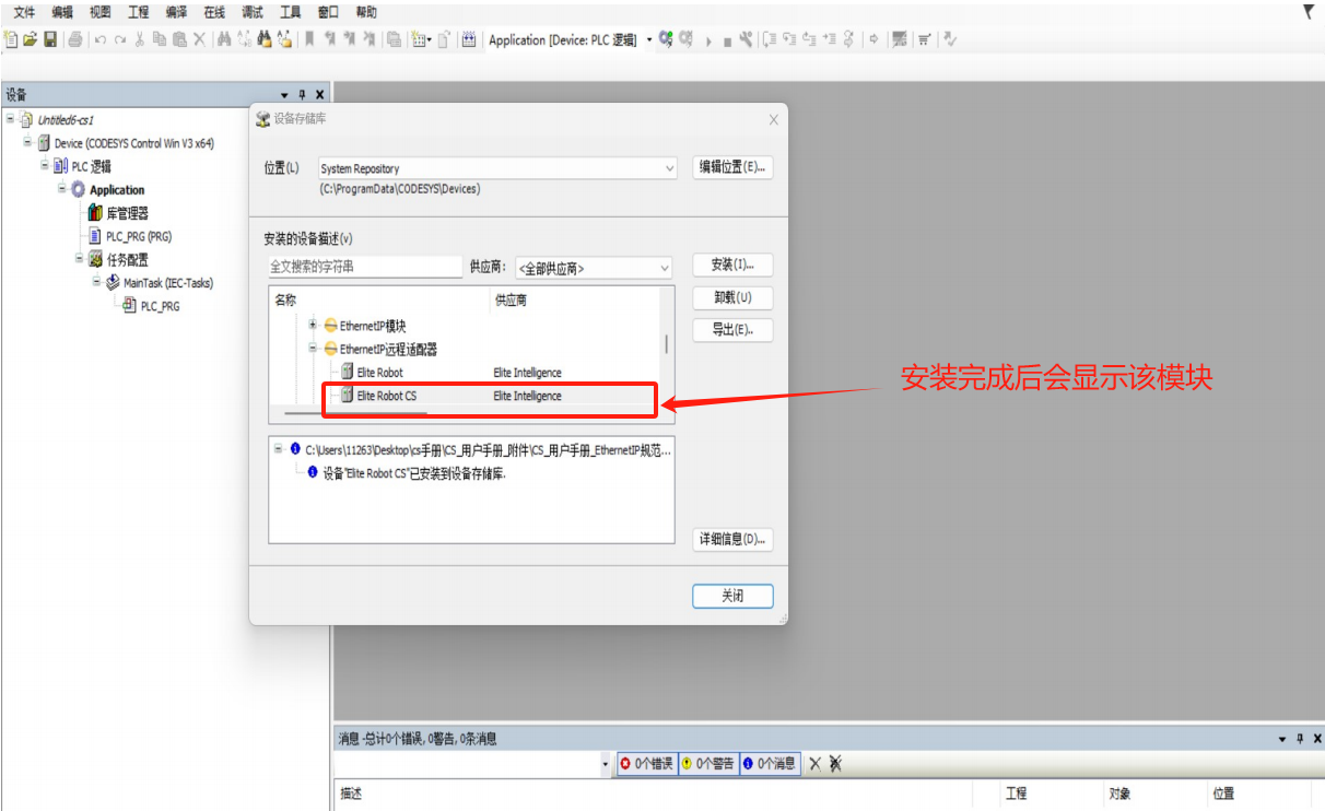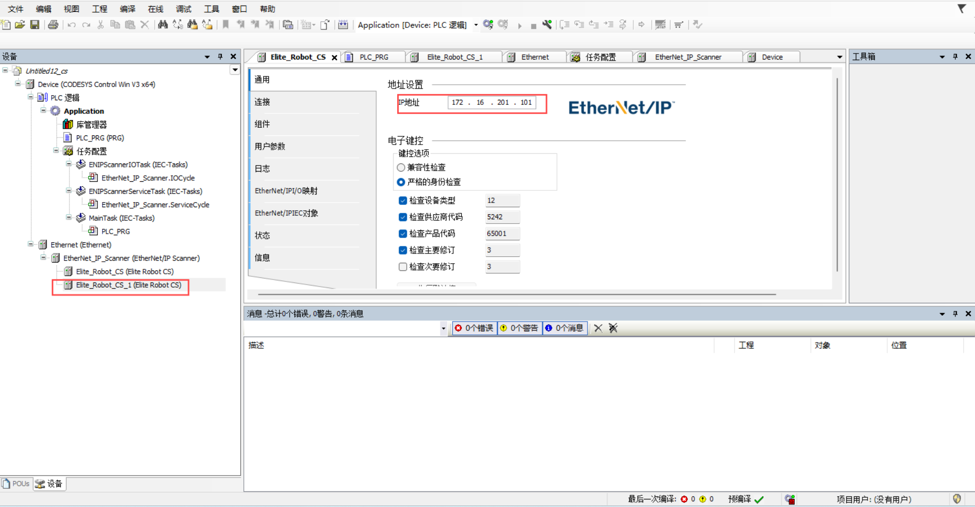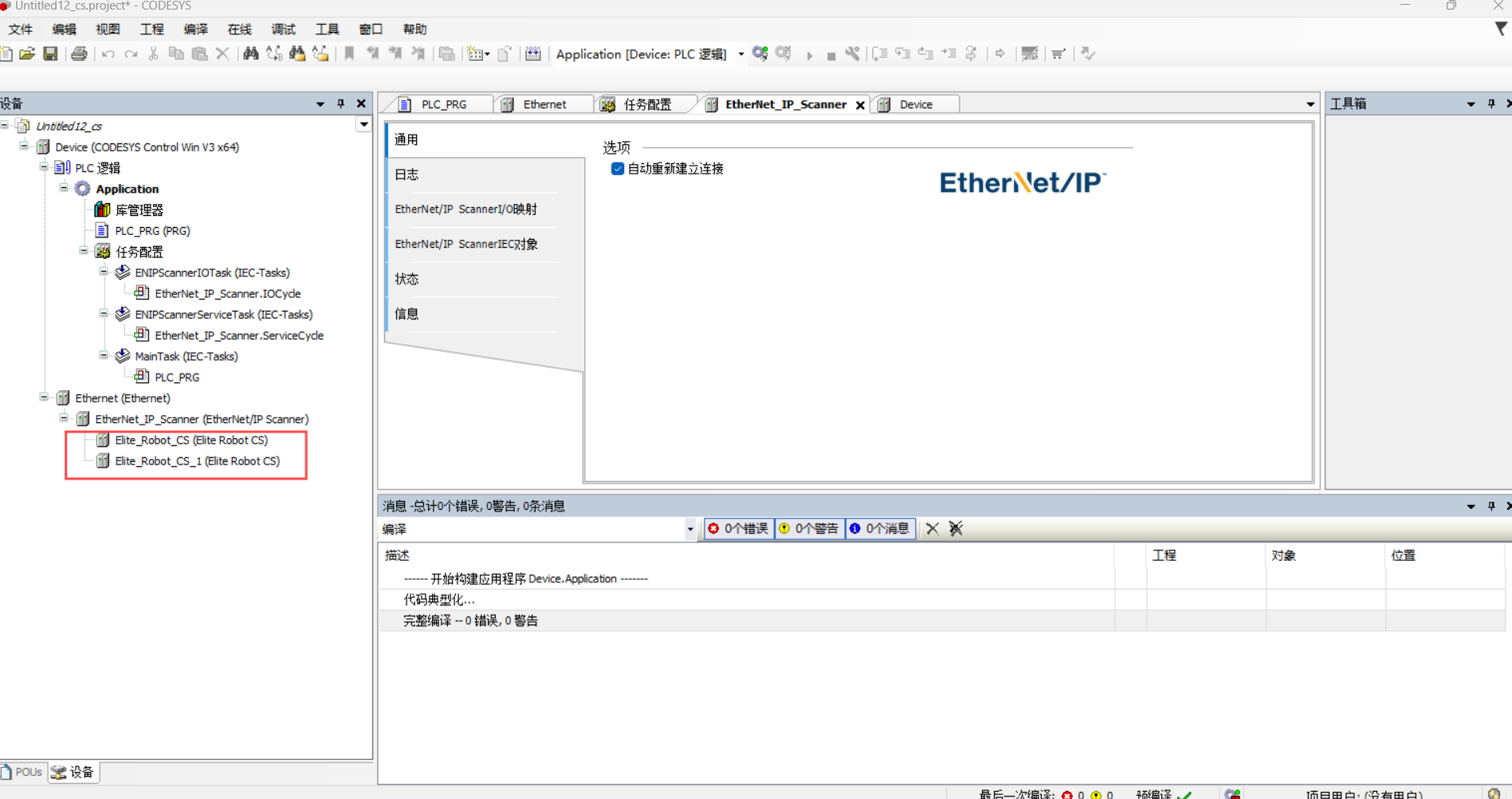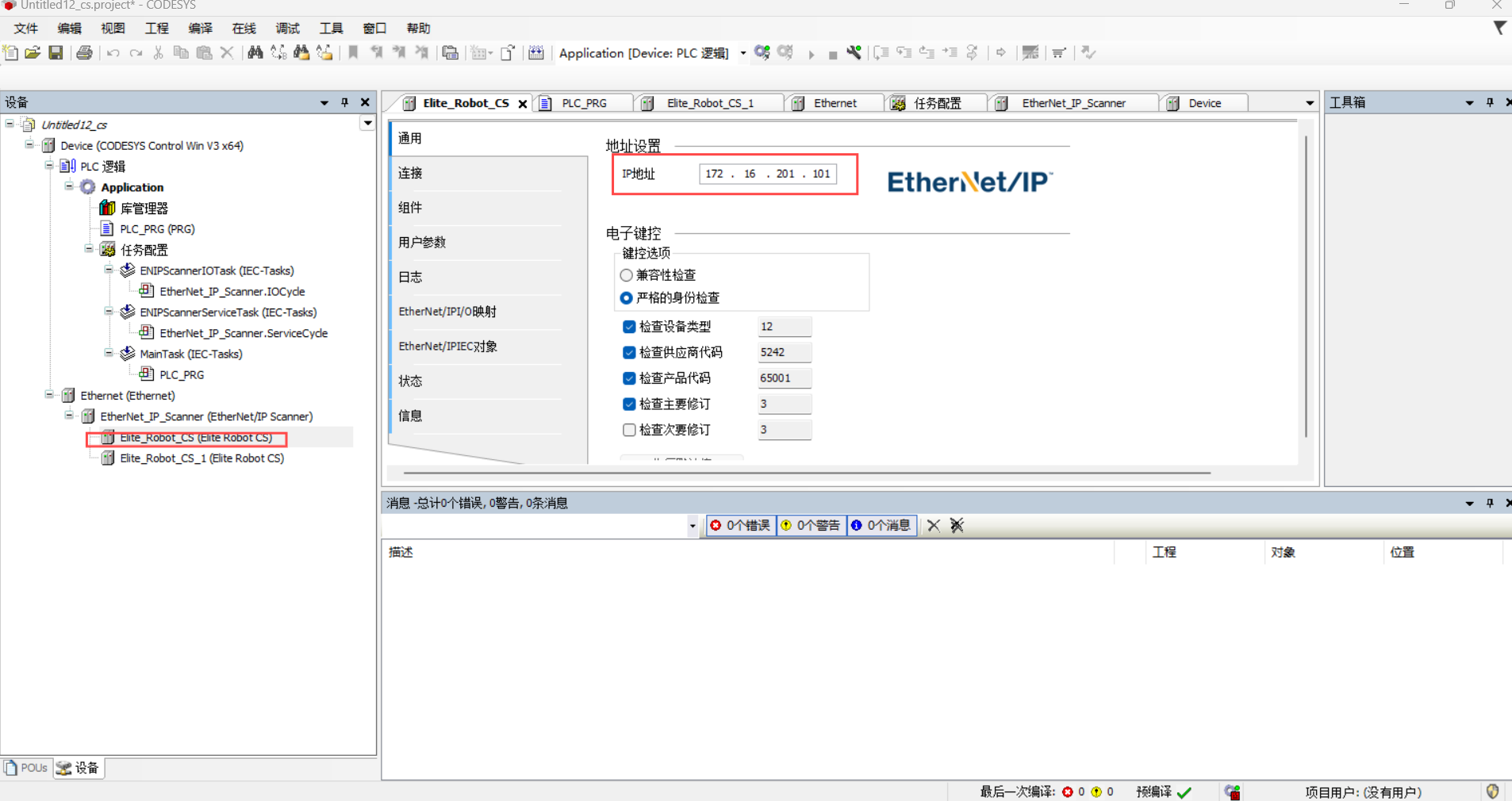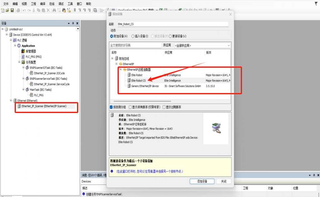 选择 Ethernet/IP Scanner-添加设备-EthernetIP-EthernetIP 远程适配器-Elite Robot CS