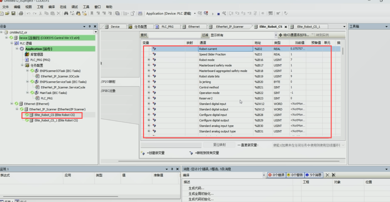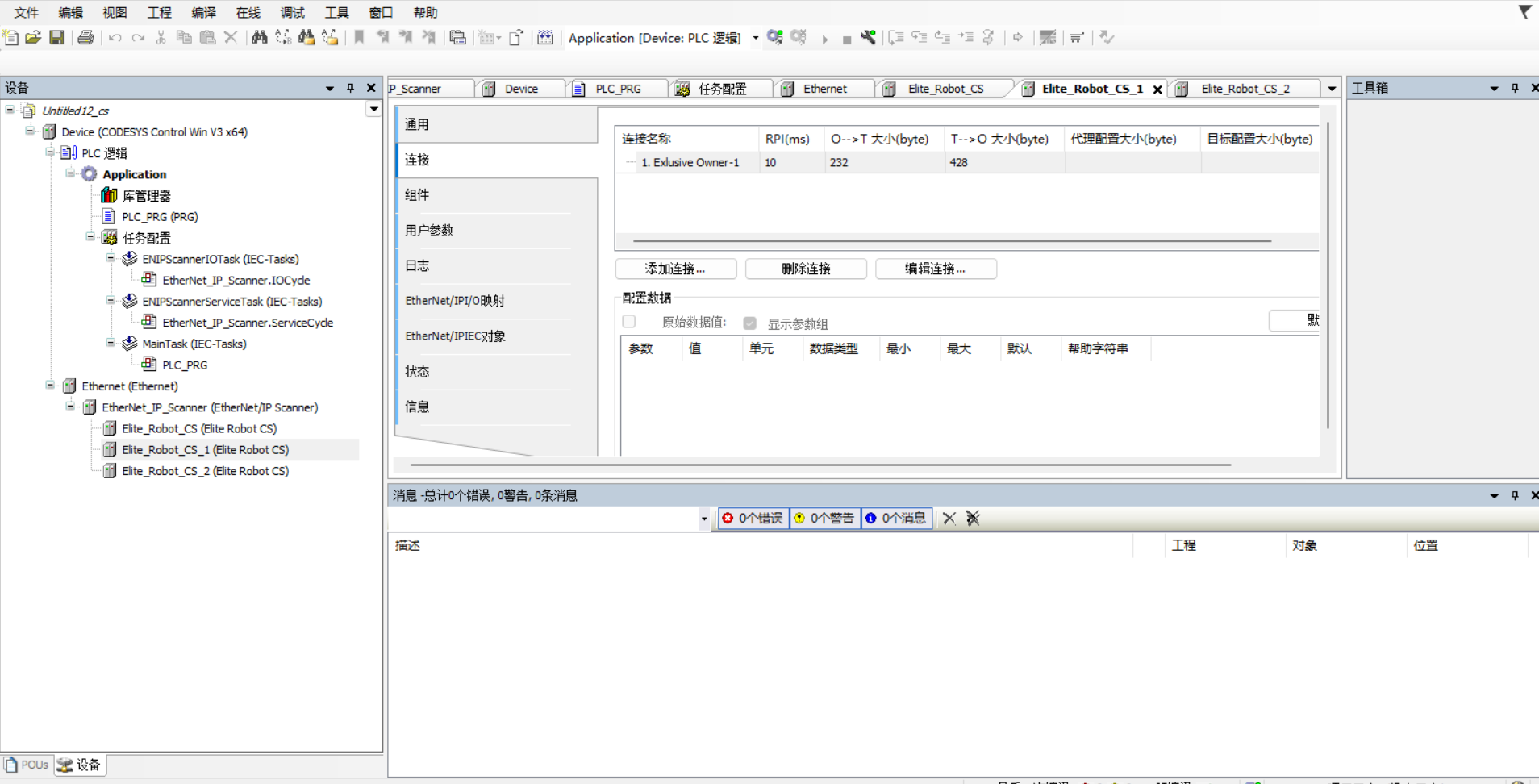 CS机器人通过codesys与两台CS机器人进行EIP通讯