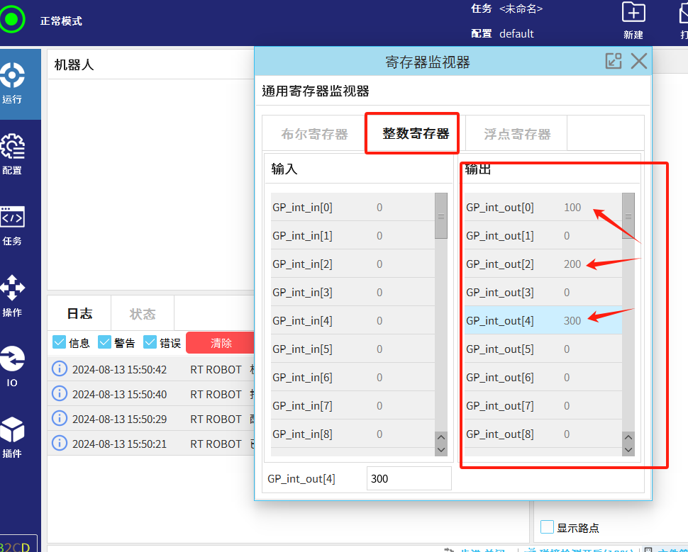 机器人写入整型数据