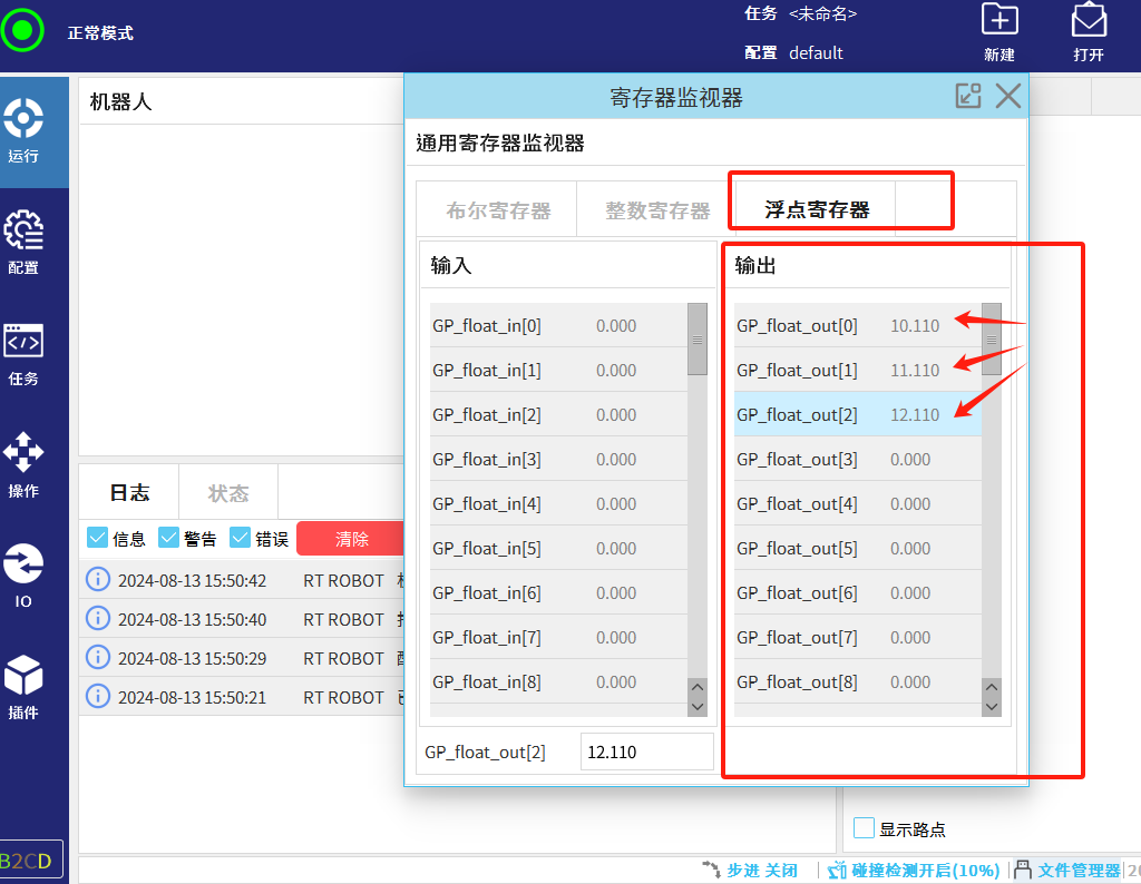 机器人写入浮点数数据
