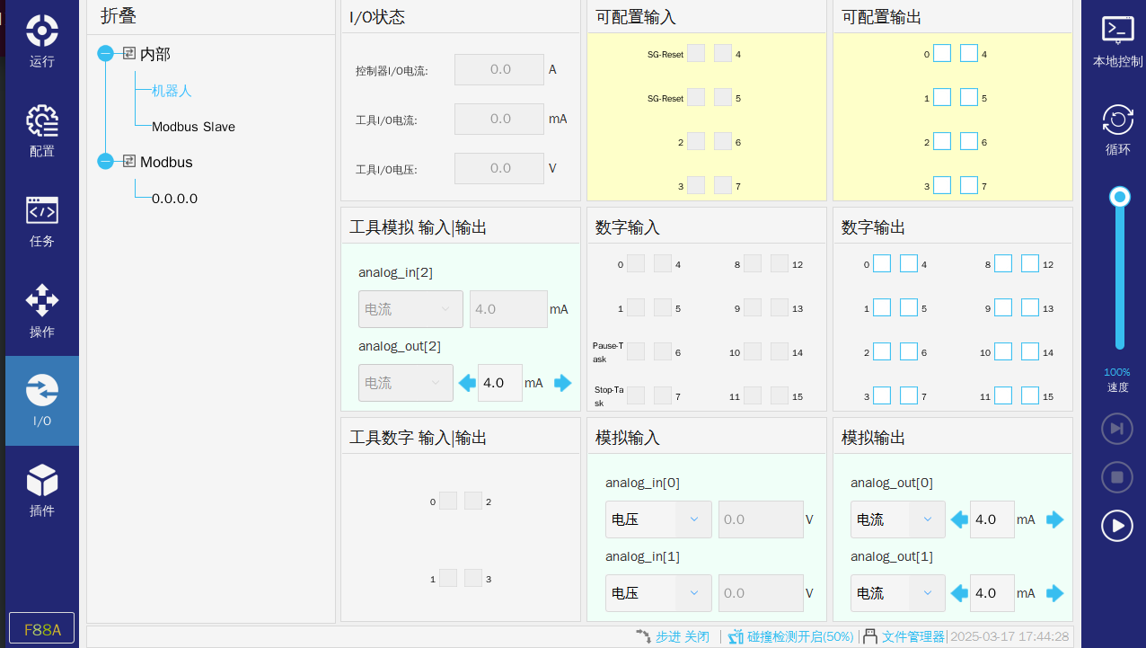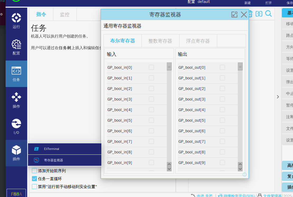 5.  查看IO信号,modbus,通用寄存器信号。