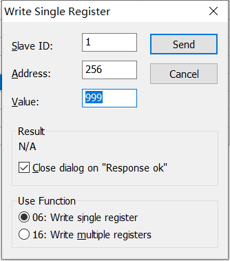 输入id 功能码 地址和数量,注意地址不要与上一步设置重复