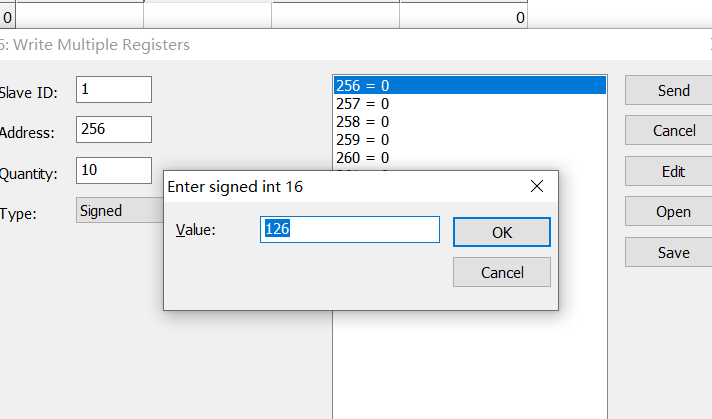 第二种方法:点击functions --16:write multiple registers,双击图中显示列表来修改寄存器值