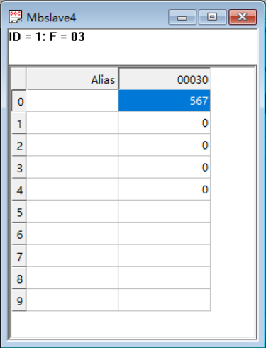 点击值,输入数据,即可在modbus slave上查看到写入的值