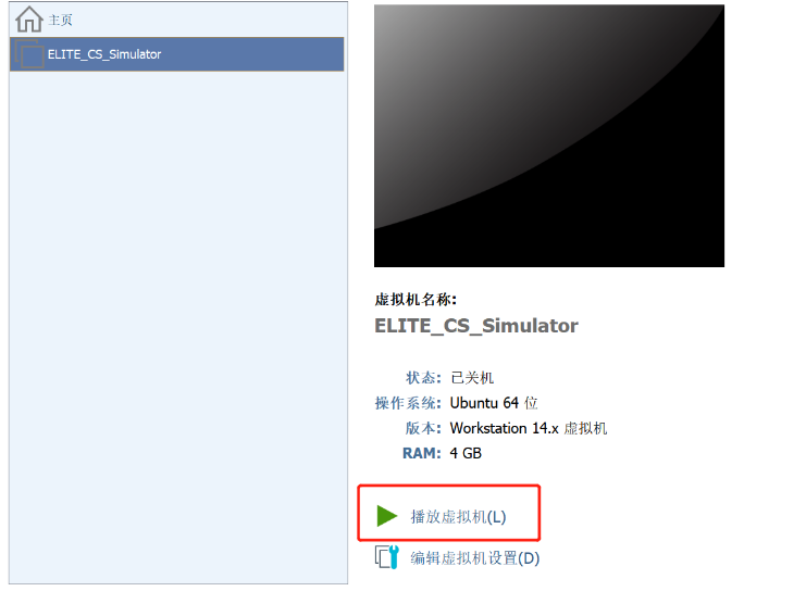 2.4.3如图-6所示,左侧选中该虚拟机,在右下角点击“播放虚拟机”,如遇密码:elibot