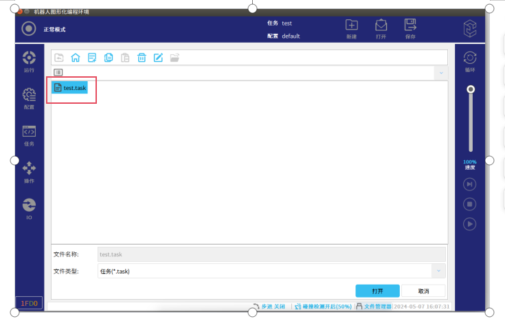 第一步:按照2.4.4操作方法选择与备份程序相对应型号的机器人,然后打开虚拟示教 器