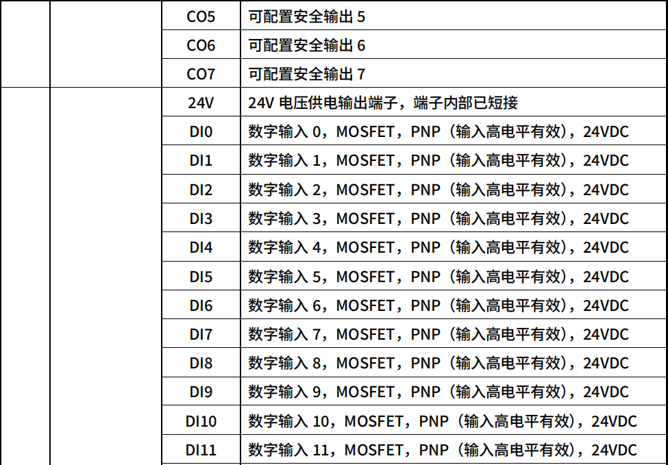 CS 系列控制柜支持 16 路数字输入和 16 路数字输出。可用于输入或输出数字量信号,信号类型为PNP型。