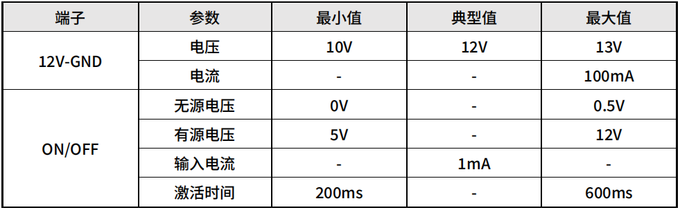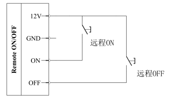 远程 ON 输入仅用于短时间激活,其工作方式与 POWER 按钮相同,激活时间至少大于200ms,小于3s.。