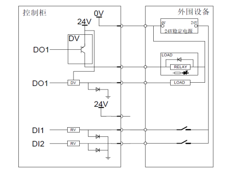 3、使用外部稳压电源供电,数字输入输出接线方式