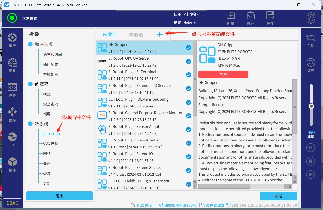 ● 将获取到的插件文件放置到U盘内,并将U盘接入机器人USB接口,按照下方操作安装IOExtensionConfig插件。