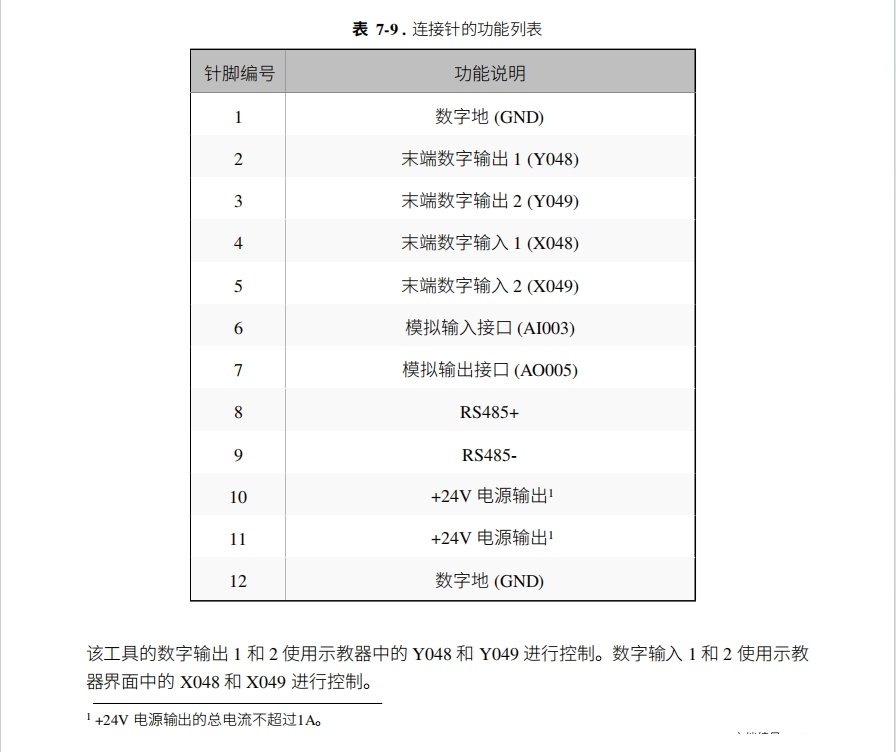 具连接器还提供串行接口,用于使用 RS485 协议与工具通信。