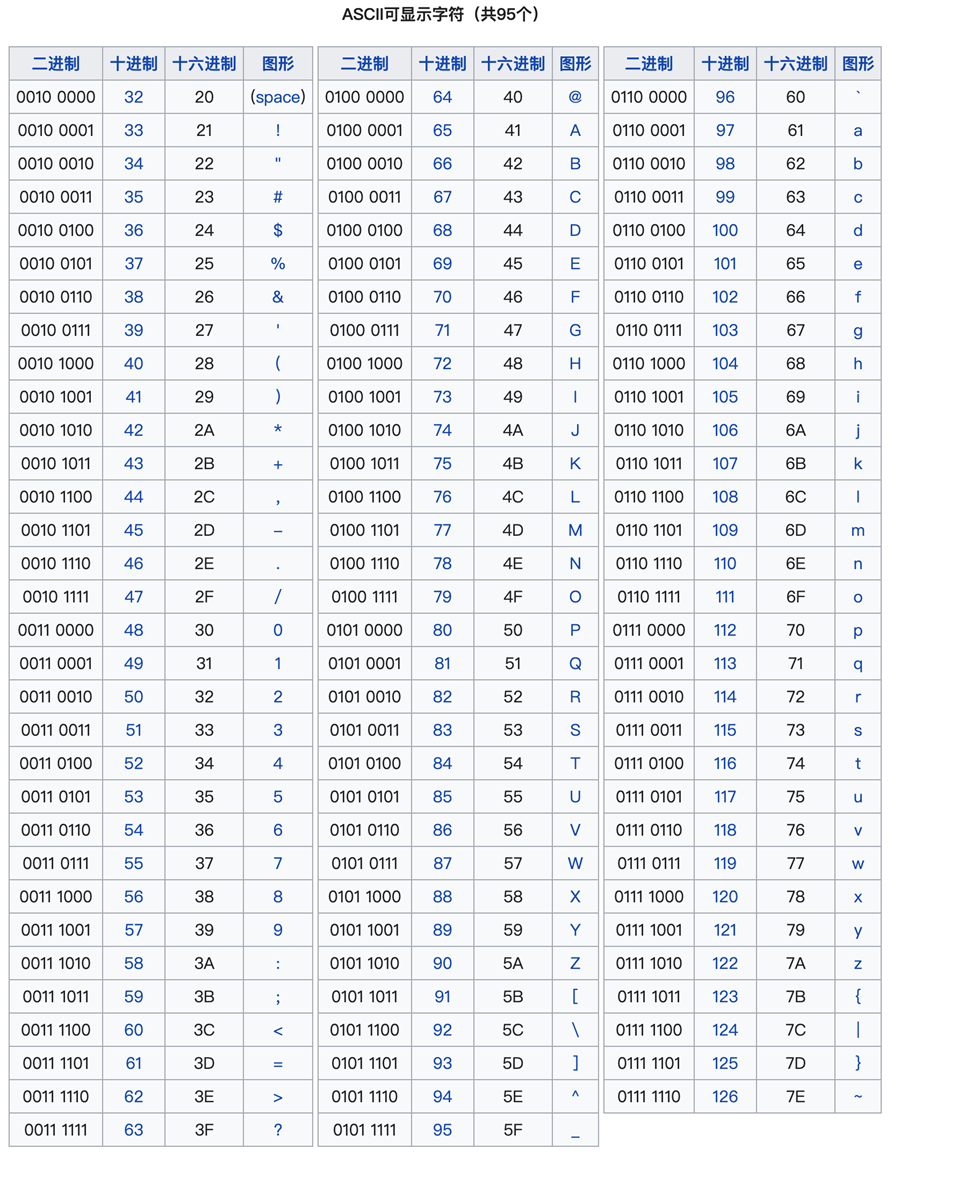 PLC进行socket通讯发送给机器人数据时,是以ASCII码的格式发送16进制字符串。ASCII码是基于拉丁字母的一套电脑编码系统,主要用于显示现代英语和其他西欧语言。它是最通用的信息交换标准,并等同于国际标准 ISO/IEC 646。图表如下: