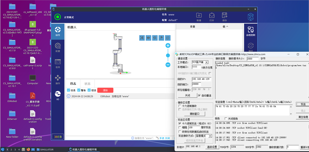 更多指令可参考29999端口使用文档或CS_用户手册_EliRobot Dashboard。